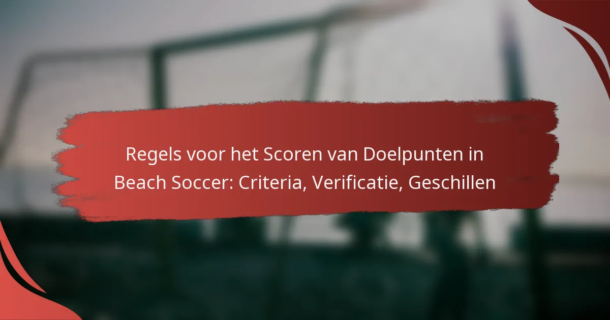 In beach soccer is een doelpunt geldig wanneer de hele bal de doellijn tussen de doelpalen en onder de lat overschrijdt, terwijl alle spelers zich aan de spelregels houden. De verificatie van een doelpunt omvat de beoordeling door de scheidsrechter en vastgestelde procedures om te bevestigen dat aan de regels van het spel is voldaan. Geschillen kunnen ontstaan door onduidelijke beslissingen of interpretaties van de regels, wat een duidelijk proces voor oplossing vereist om eerlijk spel te waarborgen.